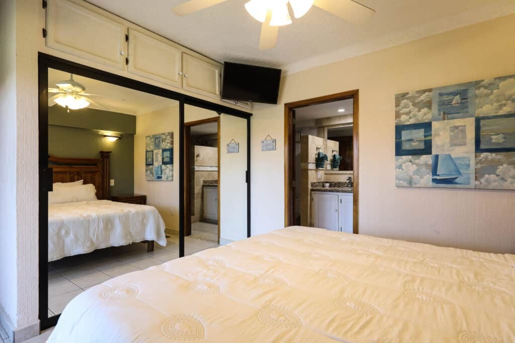 A two-minute walk and you are on the golden sands of the beautiful Medano beach, one of the best swimming beaches in Cabo featuring wonderful restaurants and all kinds of water sports. Take a water taxi with the family to see the famous “Cabo Arch” and “Lovers Beach”. Another five-minute walk and you will find the center of town and the Marina, Cabo San Lucas has some of the best sports fishing in the world. Conveniently located are two Supermarkets and a large shopping mall, all about a two-minute walk from Marina Sol.