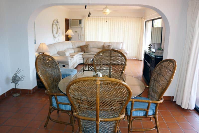 This beautiful 2-bedroom condo, located in the heart of Cabo San Lucas, one block from the famous Medano beach, and only a five-minute walk to the center of Cabo and the Marina, can sleep 6 guests, having a King bed in the master bedroom, a Queen and a Twin bed in the second bedroom and a Roll away bed. There are two full bathrooms, both with hair dryers. A fully fitted kitchen will take care of all your cooking needs, eat inside at the dining table or Bar-B-Que on the spacious wrap around patio which has a beautiful view of the courtyard and pool or dine at the ‘Tres Amigas Cantina’ poolside Restaurant and Bar, where they serve Breakfast, Lunch and Dinner at great prices. Quiet mini split A/C's and ceiling fans in all rooms keeps you cool during the warm summer evenings. For your entertainment pleasure, there is a Large Flat Screen TV in the living room with free Netflix. To keep you in touch with the rest of the world this condo has its own dedicated Fiber Optic Internet service (60 Mbps) plus phone service with free Local & International calling.