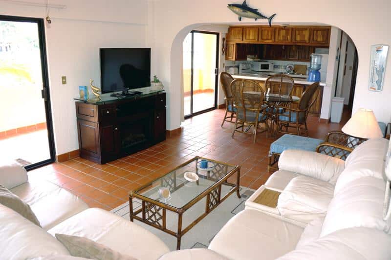 If you prefer the beach, a two-minute walk and you are on the golden sands of the beautiful Medano beach, one of the best swimming beaches in Cabo featuring wonderful restaurants and all kinds of water sports. Take a water taxi with the family to see the famous “Cabo Arch” and “Lovers Beach”. Another five-minute walk and you will find the center of town and the Marina, Cabo San Lucas has some of the best sports fishing in the world. Conveniently located are two Supermarkets and a large shopping mall, all about a two-minute walk.