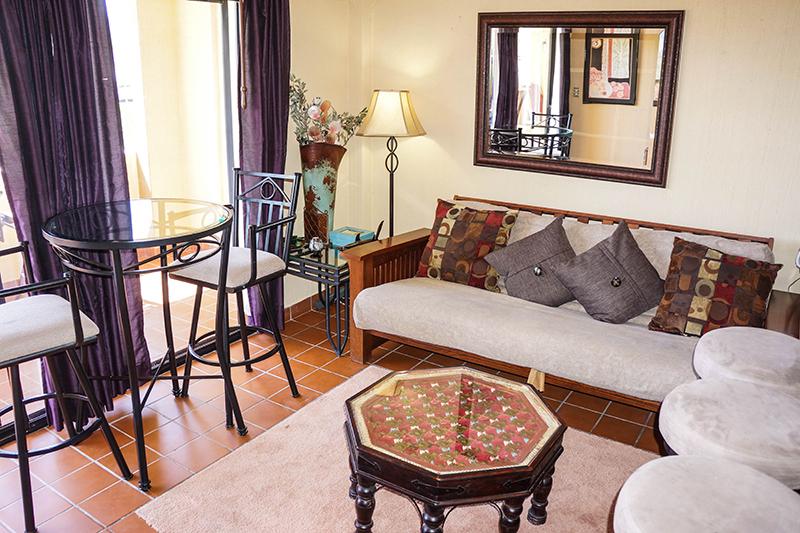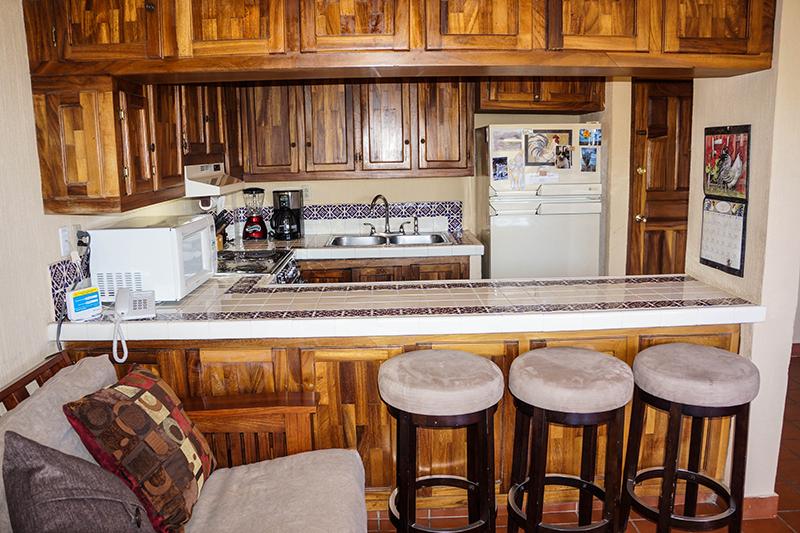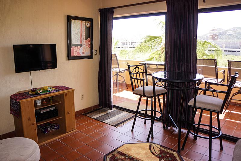 This very pleasing Condominium, located in the heart of Cabo San Lucas, one block from the famous Medano beach, and only a five-minute walk to the center of Cabo and the Marina, can sleep 4 guests with a Queen bed in the master bedroom and a sleeper sofa in the Living room. There is a full bathroom with a hairdryer. A fully fitted kitchen will take care of all your cooking needs. Entertainment is provided by a Smart Flat Screen TV in the living room, with many channels to choose from or you may want to relax on the patio and watch some of the gorgeous sunsets over Cabo. Quiet air conditioning and ceiling fans in each room will keep you comfortable during the warm summer nights, eat inside or Dine at the ‘Three Amigas Cantina” pool side restaurant and bar, where they serve Breakfast, Lunch and Dinner, at very reasonable prices. To keep you in touch with the rest of the world this condo has its own dedicated Fiber Optic Internet service (60 Mbps) plus phone service with free Local & International calling.