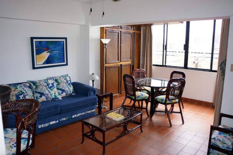 The Condo sleeps 3, a King in the bedroom and a sleeper couch in the living room, there is a full bathroom. This condo has a fully fitted kitchen, a dining table that seats 4, Air Conditioning, Cable TV, dedicated Internet. A Roll Away bed is available for sleeping an extra person. Air conditioning in each room.