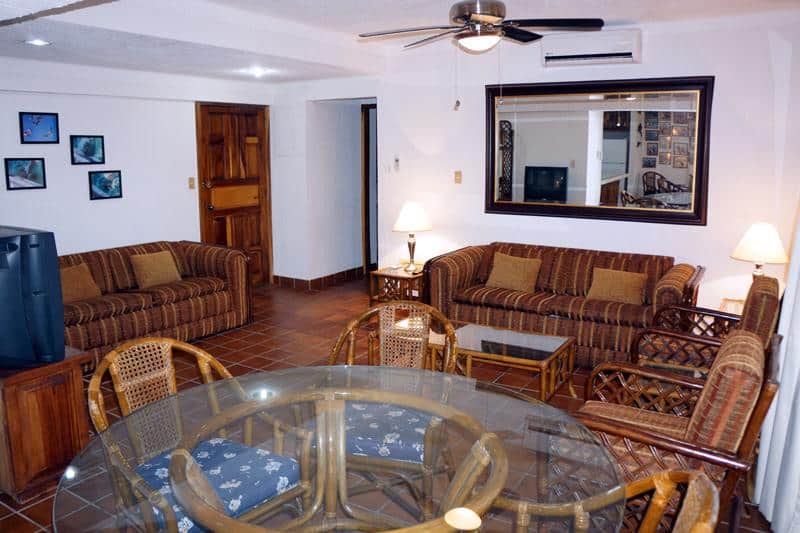 The Condo sleeps 6, having 2 bedrooms (King bed in the master, 2 Twins in the second bedroom and two Queen size Sleeper couches in the living room), there are 2 full bathrooms. The Kitchen has everything to satisfy your cooking needs, seat up to 6 people at the dining table, quiet mini split A/C in each room including A/C in the enclosed patio. Cable TV, Dedicated Internet and free local and International phone calling will keep you in touch with the rest of the world.