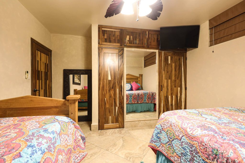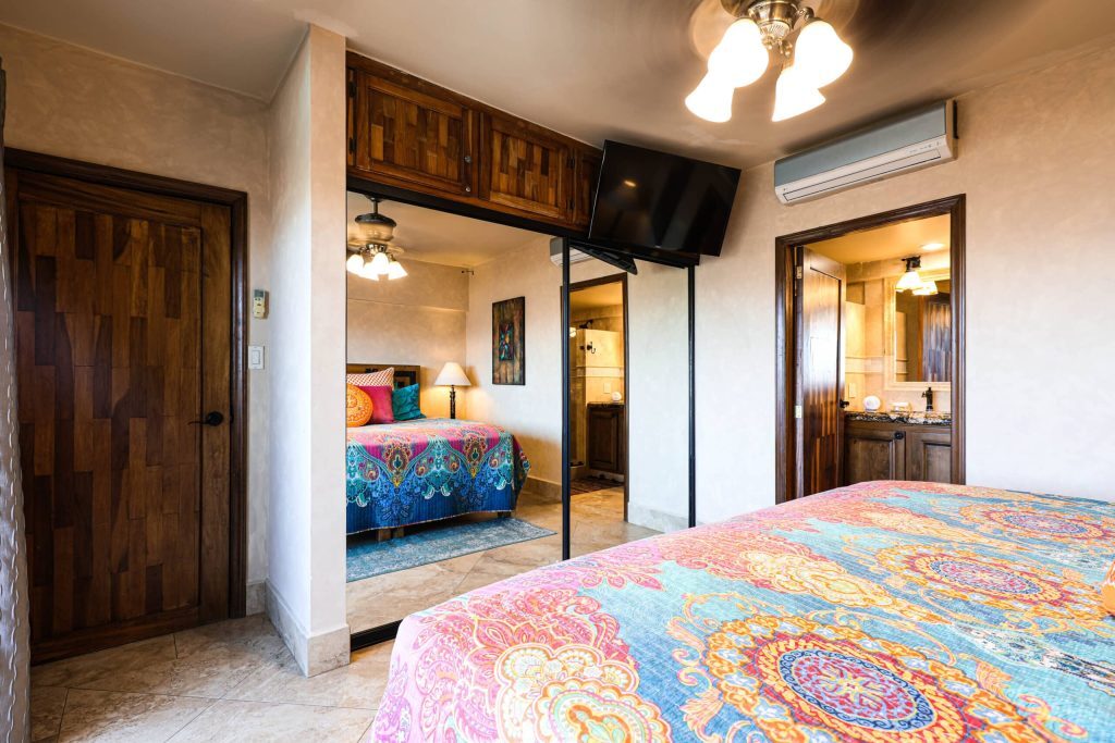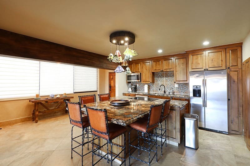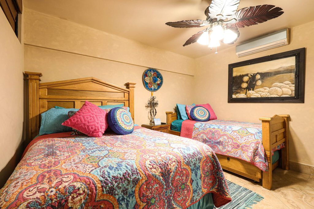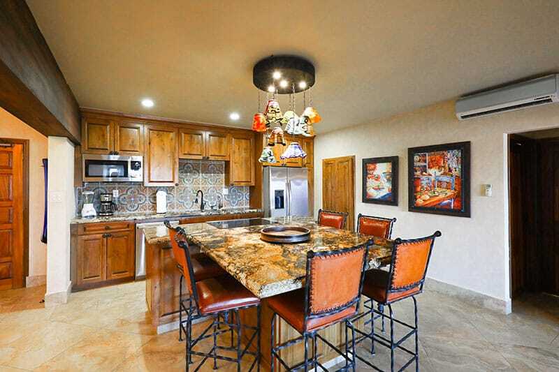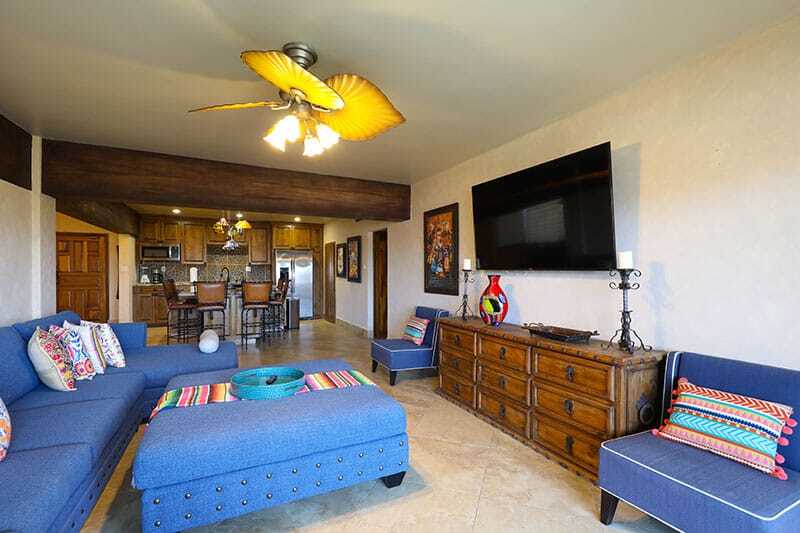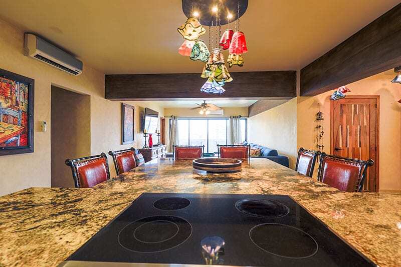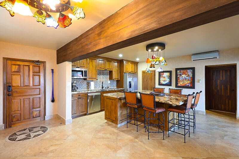 This luxury 2100 sq ft 3-bedroom recently remodeled condo is the perfect place to stay for your vacation in Cabo, it is located in the heart of Cabo San Lucas, one block from the famous Medano beach, and only a five-minute walk to the center of Cabo and the Marina. This beautiful condo which can easily sleep six guests with a King bed in the master bedroom, a Queen and a Twin bed in the second bedroom and two Twin Bunk beds in the third bedroom, there are two beautifully appointed bathrooms with all the amenities plus hair dryers. The Kitchen has everything to satisfy all your cooking needs, including a dishwasher! UV water filters supply water throughout the condo including the refrigerator for cold drinking water and making ice. Eat at the large granite island that seats 6 or BBQ your catch of the day on the spacious Patio where you can enjoy the beautiful view of the courtyard and pool, while waiting for your laundry to finish in the built in Washer & Dryer. Quiet air conditioning in each room keeps you cool during the warm summer nights. For your viewing entertainment a 55” Flat Screen Smart TV is provided in the living room. 40” Flat Screen Smart TVs are in both bedrooms. This condo has its own dedicated Fiber Optic Internet service (300 Mbps) plus phone service with free Local & International calling.