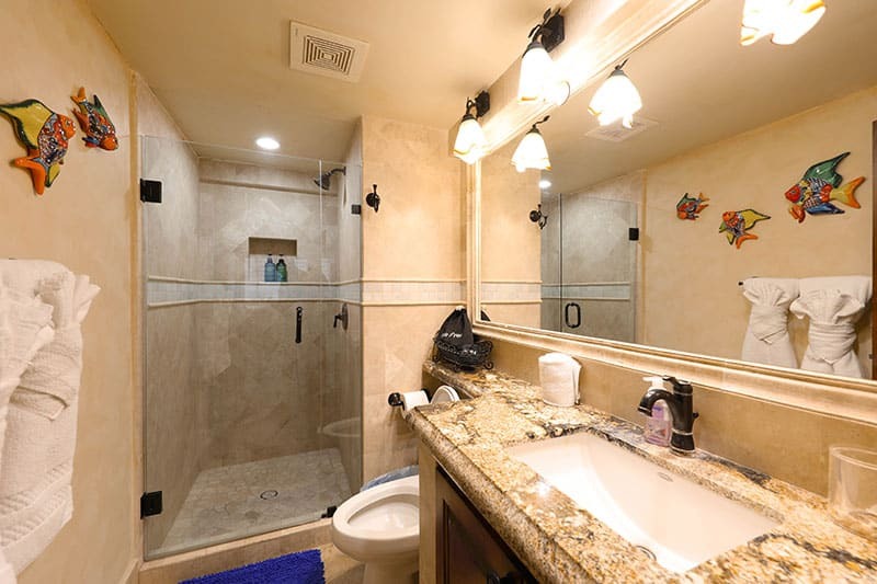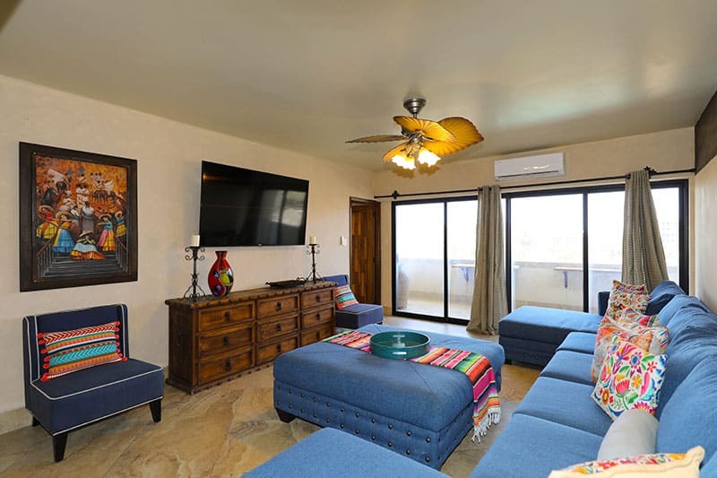 A two minute walk and you are on the beautiful golden sands of Medano beach, one of the best swimming beaches in Cabo featuring wonderful restaurants and all kinds of water sports. Take a water taxi with the family to see the famous “Cabo Arch” and “Lovers Beach”. Another five-minute walk and you will find the center of town and the Marina, Cabo San Lucas has some of the best sports fishing in the world. Conveniently located are two Supermarkets and a large shopping mall, all about a two-minute walk from Marina Sol.