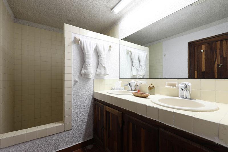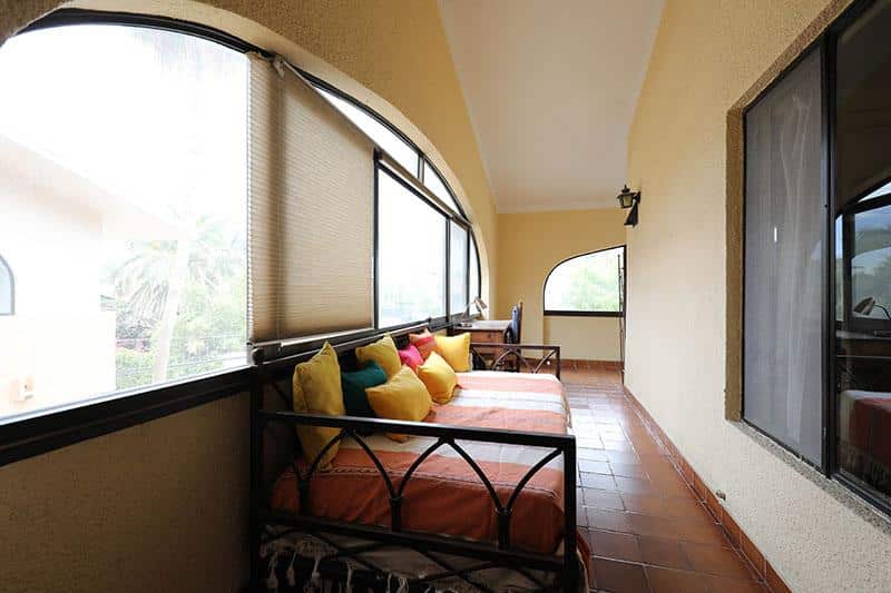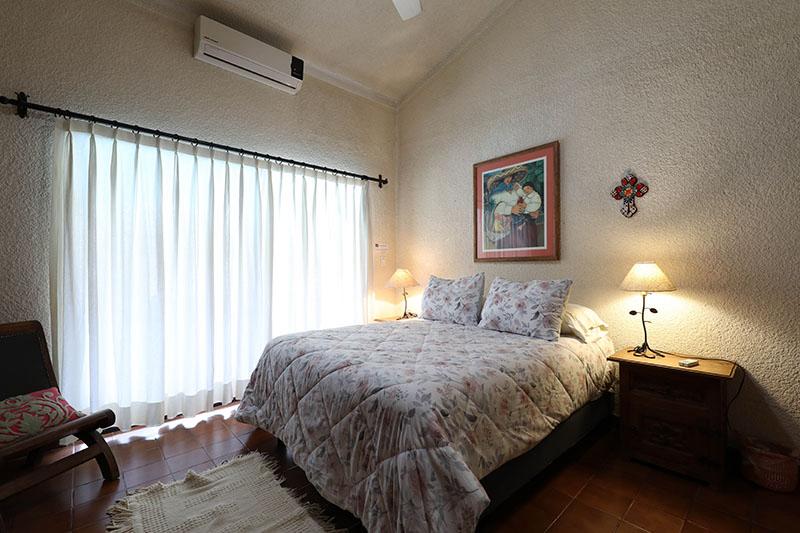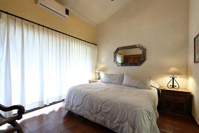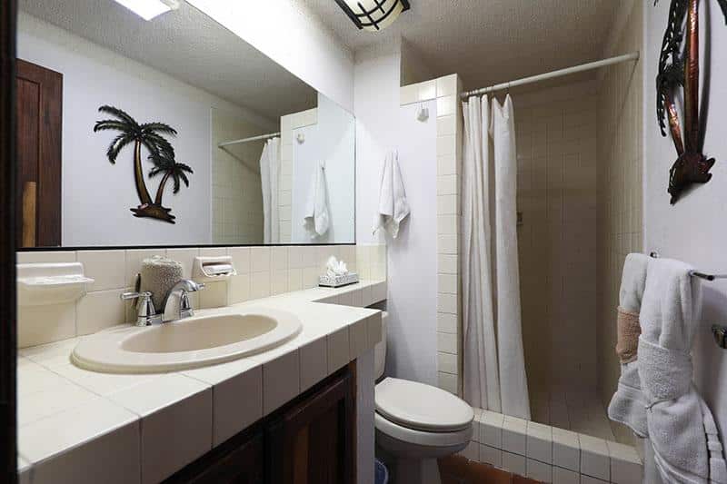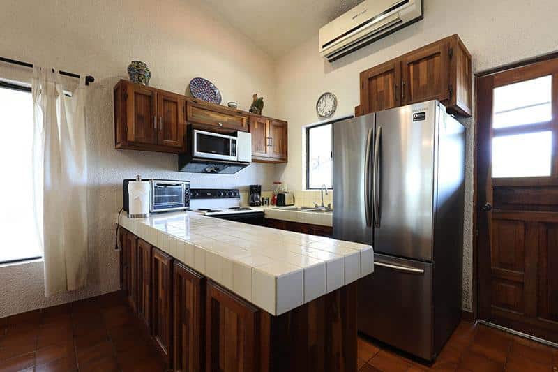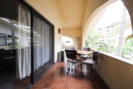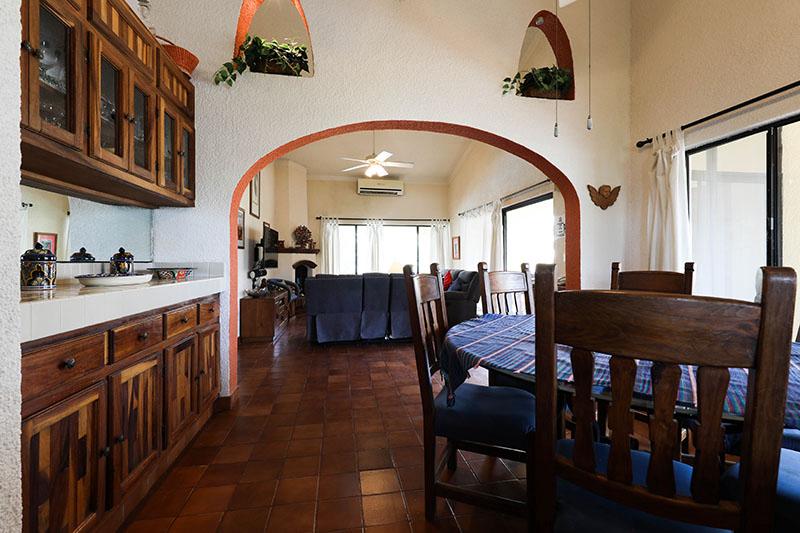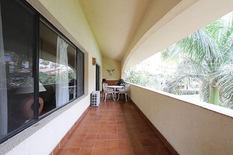 This beautiful and very spacious Penthouse condo with Vaulted ceilings, located in the heart of Cabo San Lucas, one block from the famous Medano beach, and only a five-minute walk to the center of Cabo and the Marina can sleep up to six guests, having a King bed in the master bedroom and a Queen bed in the second bedroom, and a day bed in the glassed-in patio. There are two full bathrooms with hair dryers. The Kitchen is equipped to meet all your cooking requirements, eat at the large dining table that seats 6 or Bar-B-Que on the spacious wrap around patio which has a beautiful view of the courtyard and pool or dine at the ‘Tres Amigas Cantina’ poolside Restaurant and Bar, where they serve Breakfast, Lunch and Dinner at great prices. Quiet mini split A/C's and ceiling fans in all rooms keep you cool during the warm summer evenings. For your entertainment pleasure, there is a Large Flat Screen TV in the living room with hundreds of channels to choose from. To keep you in touch with the rest of the world this condo has its own dedicated Fiber Optic Internet service (60 Mbps) plus phone service with free Local & International calling.