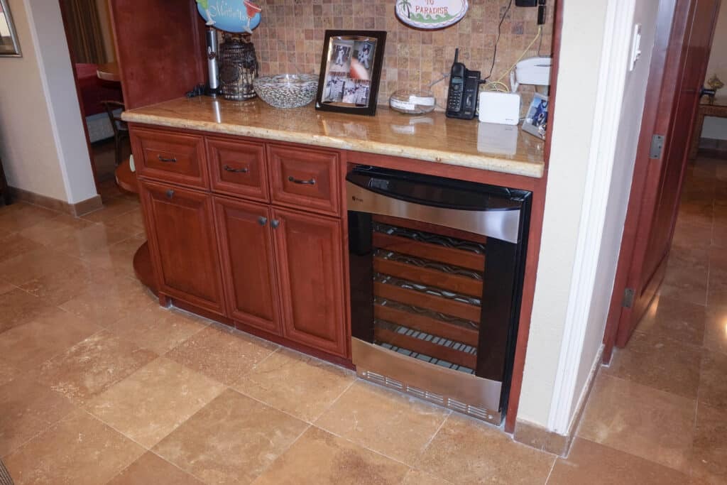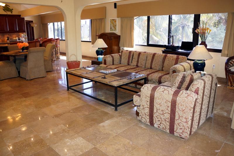 Rick and Alma own at least 20 condos in Marina Sol and have an on-site concierge. All personnel at the complex are very helpful and friendly. Rick and Alma responded to calls immediately (our cab driver was lost). The courtyard at the complex is an oasis from the busy activities outside, since the complex is surrounded by night clubs and restaurants, and just 2 blocks from the beach. There is a poolside restaurant, a clubhouse and a hot tub. It is a comfortable place to relax . Hint: most restaurants require reservations. The condo itself is on the top floor of a 3 story building, which allows for lovely high ceilings but would not be handicapped accessible. There are lovely built -in wood cabinets and curved archways throughout, and stone tile floors. The appliances in the kitchen are great, but we were instructed to use the coin op laundry in the complex rather than the machines in our unit. There’s a large balcony with a grill and the kitchen is well stocked.