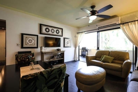 This beautifully appointed poolside condo, located in the heart of Cabo San Lucas, one block from the famous Medano beach, and only a five-minute walk to the center of Cabo and the Marina, can sleep 4, having a King in the master bedroom and a sleeper couch in the living room. There is a gorgeous full bathroom. The kitchen is equipped to meet all your cooking needs, including a dish washer. Bar-B-Que on the spacious patio while watching the beautiful view of the courtyard and pool. Air Conditioning and ceiling fans in all rooms ensures your comfort during the warm summer nights. Entertainment is provided by a Flat Screen TV in the living room and a Flat Screen TV in the bedroom. To keep you in touch with the rest of the world this condo has its own dedicated Fiber Optic Internet service (150 Mbps) plus phone service with free Local & International calling.