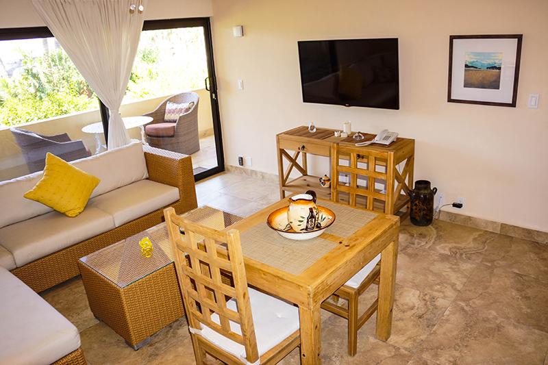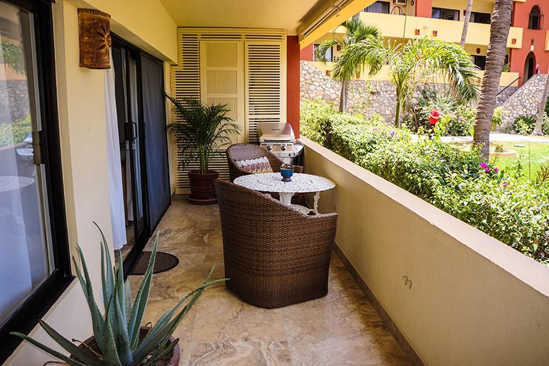 This beautifully appointed poolside condo, located in the heart of Cabo San Lucas, one block from the famous Medano beach, and only a five-minute walk to the center of Cabo and the Marina, can sleep 3, having a Queen in the master bedroom and a roll away bed in the living room. There is a gorgeous full bathroom with a hair dryer. The kitchen is equipped to meet all your cooking needs, including a dish washer, filtered water for the refrigerator. Bar-B-Que on the spacious patio while watching the beautiful view of the courtyard and pool. Air Conditioning and ceiling fans in all rooms ensures your comfort during the warm summer nights. Entertainment is provided by a Large Flat Screen TV in the living room and a Flat Screen TV in the bedroom. To keep you in touch with the rest of the world this condo has its own dedicated Fiber Optic Internet service (150 Mbps) plus phone service with free Local & International calling.