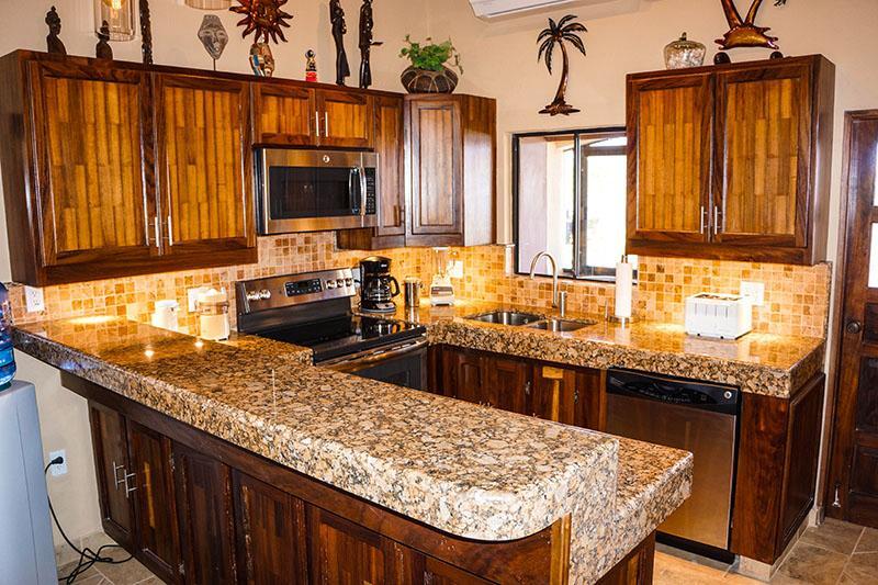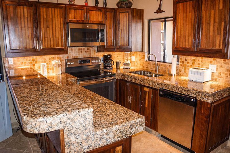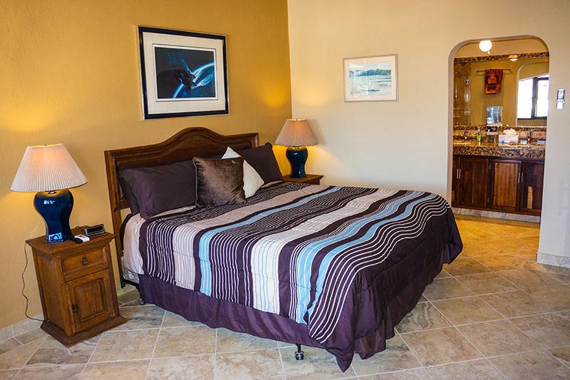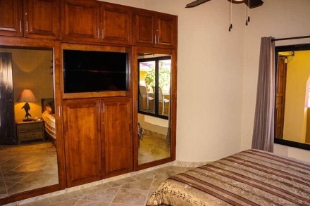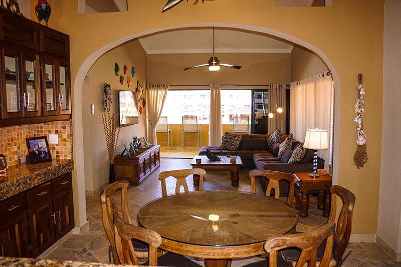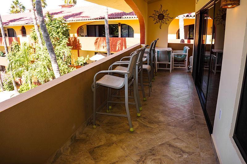 This beautiful remodeled 3-bedroom 1737 square foot Penthouse condo with Vaulted ceilings, located in the heart of Cabo San Lucas, one block from the famous Medano beach, and only a five-minute walk to the center of Cabo and the Marina can sleep 6 guests, having 3 bedrooms (a King in the master bedroom, a Queen in the second bedroom and 2 Twins in the third bedroom), there are 2 well-appointed full bathrooms. The kitchen has granite counter tops and is equipped to meet all your cooking needs. A large dining table seats 6. Bar-B-Que on the large wrap around patio which has a beautiful view of the courtyard and pool or dine at the ‘Tres Amigas Cantina’ poolside Restaurant and Bar, where they serve Breakfast, Lunch and Dinner at great prices. Quiet mini split A/C's and ceiling fans in all rooms keeps you cool during the warm summer evenings. For your entertainment pleasure, there is a Large Flat Screen TV in the living room and Flat Screen TV's in both bedrooms, Netflix is available on all 3 TV's. To keep you in touch with the rest of the world this condo has its own dedicated Fiber Optic Internet service (60 Mbps) plus phone service with free Local & International calling.