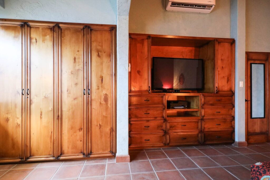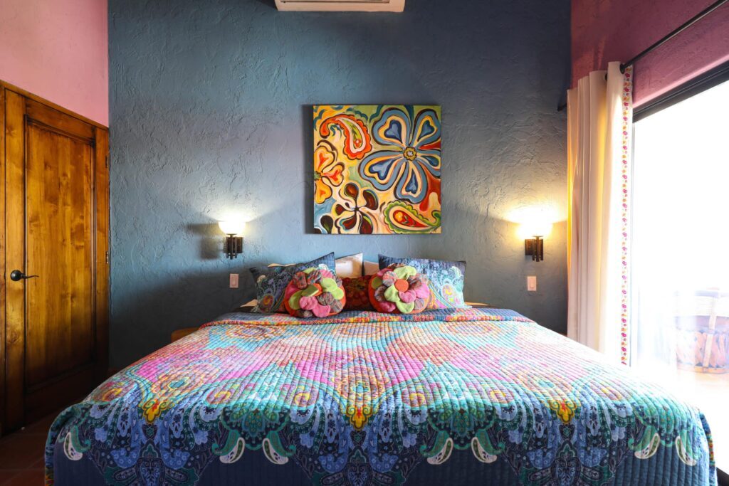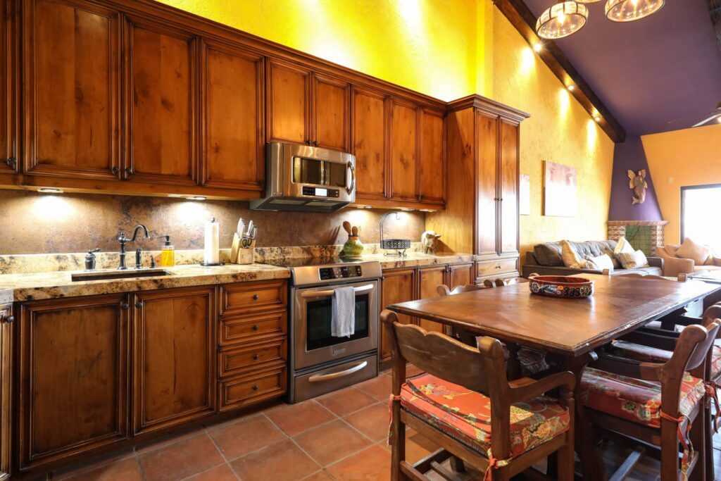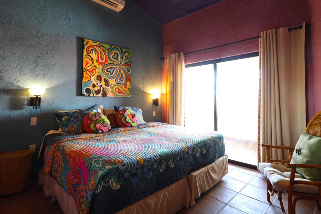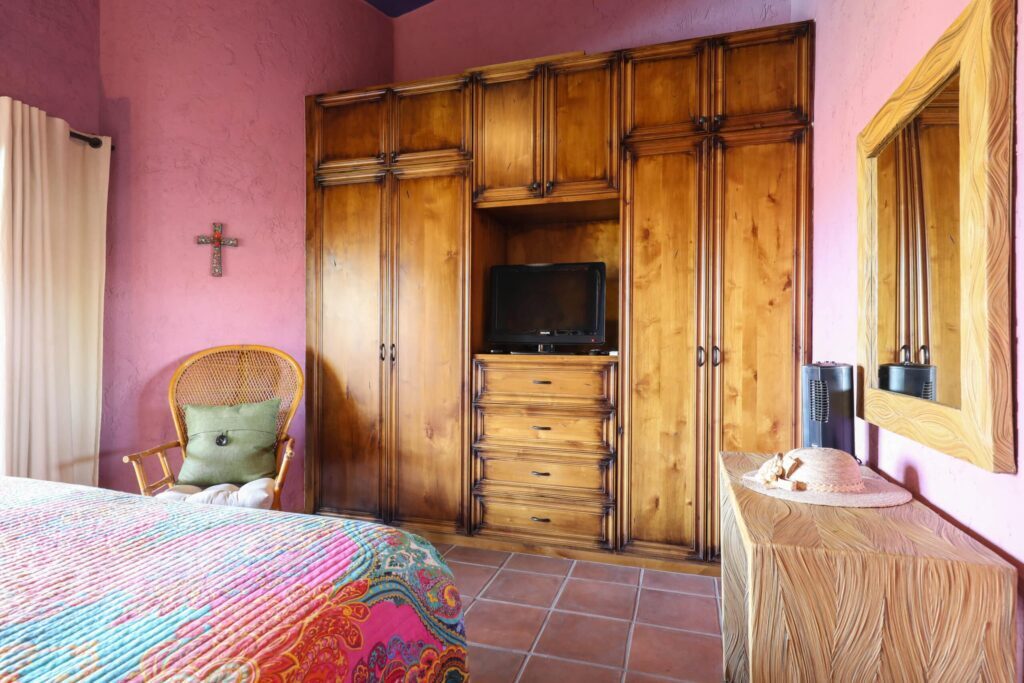 Located on top floor of the "E" Building you will find this walk up 2 bedroom 2 bath unit featuring a colorful Hacienda decor that lets you know you've arrived at the perfect place to relax and unwind in always sunny Cabo! The residence has an open kitchen with all new appliances and is equipped with all the essentials in case you like to cook in. A water filtration system supplies the unit and there is an additional ice maker to cover any desire for blended drinks or a cooler fill up to take fishing. There are flat screen TVs in the main living room, both bedrooms and complimentary in unit Wi-Fi. Retracting glass sliders open onto the front balcony and welcome the outside in. A built in BBQ and outdoor seating make this the perfect spot to grill and enjoy the fish you caught, have morning coffee or enjoying the twinkling lights of the city off in the distance while enjoying an evening night cap. Off the kitchen is a laundry room with full size washer and dryer should you need it or relax and simply drop your laundry off to be done. Your options are endless here. .