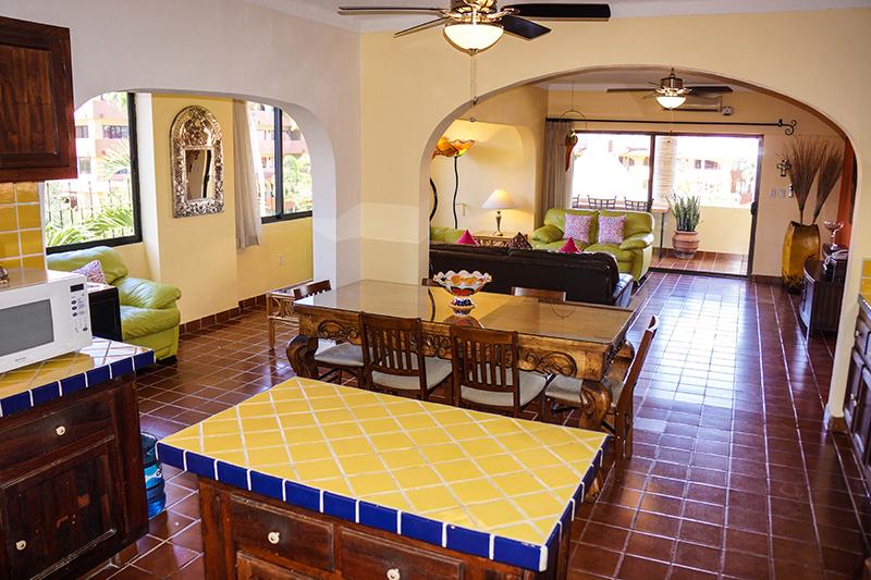 This beautiful remodeled 3-bedroom 1737 square foot condo, located in the heart of Cabo San Lucas, one block from the famous Medano beach, and only a five-minute walk to the center of Cabo and the Marina, can sleep 6 guests, having 3 bedrooms (a King in the master bedroom, a Queen in the second bedroom and a Queen and Twin in the third bedroom), there are 2 well-appointed full bathrooms with Hair Dryers. The kitchen is equipped to meet all your cooking needs. Eat at the large dining table which seats 6 or Bar-B-Que on the spacious patio which has a beautiful view of the courtyard and pool or dine at the ‘Tres Amigas Cantina’ poolside Restaurant and Bar, where they serve Breakfast, Lunch and Dinner at great prices. Quiet mini split A/C's and ceiling fans in all rooms will keep you cool during the warm summer evenings. For your entertainment pleasure, there is a Large Flat Screen TV in the living room and Flat Screen TV's in the master bedroom and the second bedroom. To keep you in touch with the rest of the world this condo has its own dedicated Fiber Optic Internet service (60 Mbps) plus phone service with free Local & International calling.
