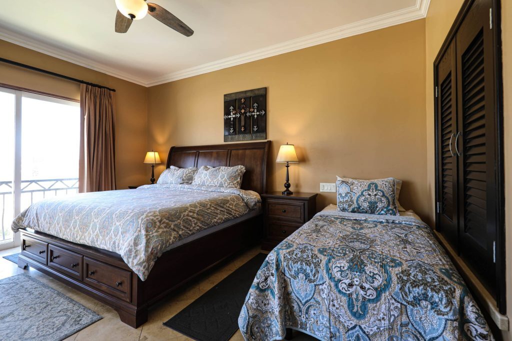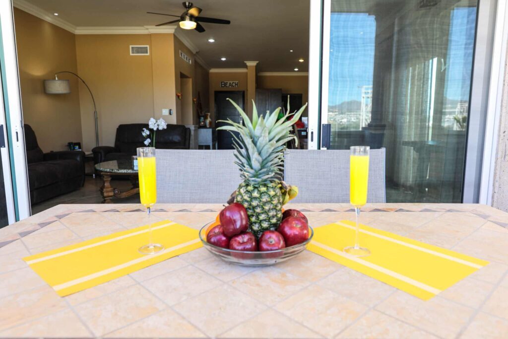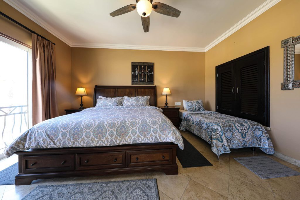 Your vacation of a lifetime is waiting for you in Cabo San Lucas Mexico! Spend your vacation at “Puerta Cabos Village” which is a gated private residential complex, with 24/7 private security. This luxurious condo, which sleeps 5 is on the fourth floor, elevator stops right outside the front door. The master bedroom has a King bed with a cushion mattress and a Twin bed, the second bedroom has a Queen bed also with a cushion mattress. The master bathroom has a jacuzzi tub as well as a walk-in shower, vanity sink and toilet. The second bathroom has a spacious walk-in shower, vanity sink and toilet. The beautiful granite topped kitchen is equipped to meet all your cooking needs. Eat at the dining table or Bar-B-Que on the wrap around patio, which has a beautiful view of the courtyard and pools plus a bonus view of Medano beach and the Sea of Cortez. Quiet mini split A/C's and ceiling fans in all rooms will keep you cool during the warm summer evenings. For your entertainment pleasure, there is a 65” Flat Screen Smart TV in the living room and Flat Screen Smart TVs in both bedrooms. To keep you in touch with the rest of the world the condo has its own dedicated Fiber Optic Internet service giving you (300 Mbps) ideal if you have to work with your computer while you are on vacation, plus phone service with free Local & International calling. For your laundry needs the condo is equipped with a washer & dryer.
